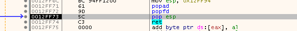 So yes, that is definitely some SafeDisc related stuff. But what is it doing? Let’s use the good old “Breakpoint on PUSHFD” trick and see where we land. We break here: