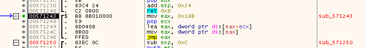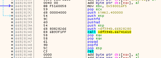 And if we once more follow the JMP we land in a setup routine in the ~df394b.dll we saw before: