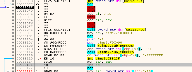 After decryption, it still doesent look right. Now there are a bunch of INT3 which are probably Nanomites which we’ve seen in Part III:
