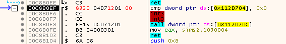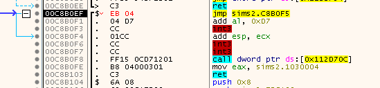 But guessing is not what we want. So I started to investigate the cause. At some point I realized that for whatever reasons - probably to fool us poor crackers - in this particular case, the data that normally holds information on how to restore a Nanomite now actually holds data to emulate the instruction instead. But since we patched the SafeDisc code in Part III to always write the Nanomite back, we end up forcingly writing 2 bytes of the instruction data.
