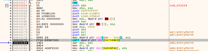 This looks familiar, we have very likely found the OEP to be located at 0x503258!