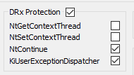 To prove my theory that this really is the OEP, I tried to place a hardware breakpoint on the address, but it never triggered. Laserlock seems to clear the breakpoints in it’s exception handlers. After playing a bit with the options in Scylla Hide, I found out that you have to tick these two options in order to make the hardware breakpoints persistens: